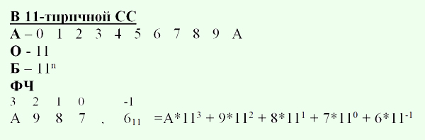 Рассмотрим одиннадцатиричную (11-ричную) СС.
